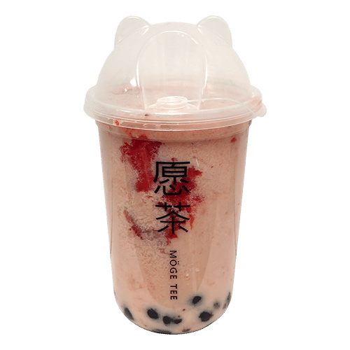 Groene jasmijn thee en honeydew meloen gearomatiseerde melkthee, met een romige, lichtzoete thee met een fruitige aardbeiensmaak. Inclusief tapioca
